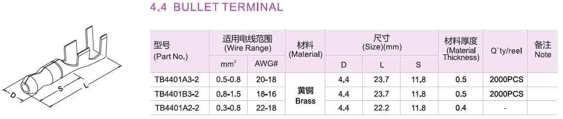 接线端子系列-高压端子&子弹型端子-4.4 BULLET TERMINAL