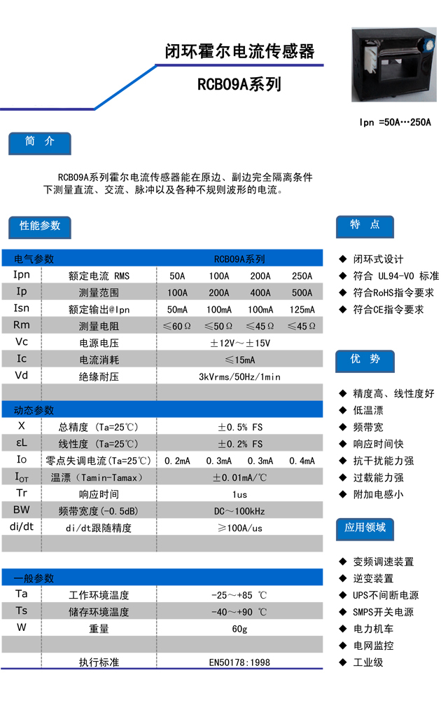 闭环电流传感器RCB09A系列